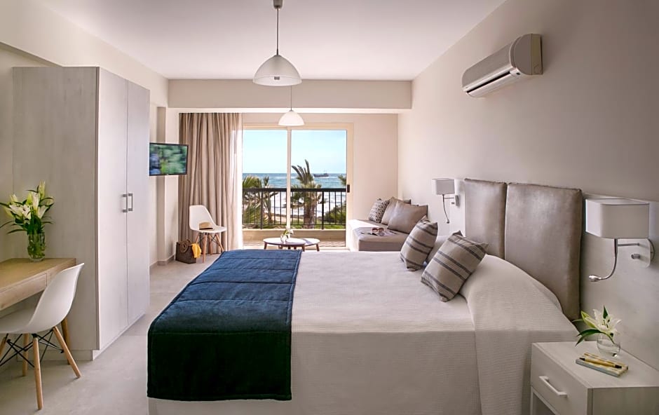 Rooms are 38 square yards. Double bed or 2 Twin Beds & 1 sofa bed Spacious verandas or terraces Free Wi-Fi connection Air-conditioning Luxury orthopedic beds Private bathroom with shower or bath, WC and amenities Mini-fridge & sink Bottle water (Upon arrival) Electric kettle Seating area LED satellite TV with international channels Direct dial telephone Hair dryer Safety deposit box (free of charge) Tea & coffee making facilities